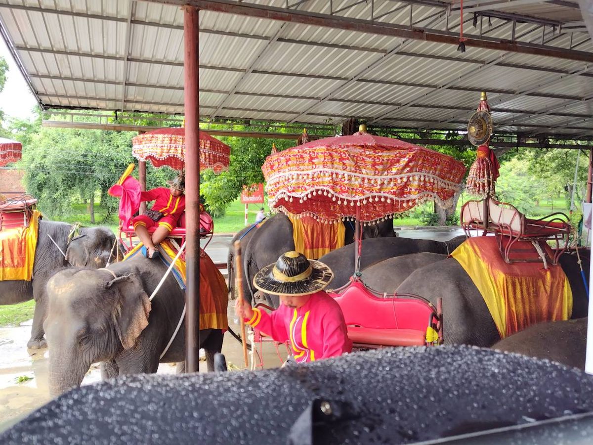 雨季のアユタヤでのゾウ乗りの天候が気になる方もいるかと思いますがずっと降っているわけではないのでガイドさんが案内順番をうまく調整してくださるので基本乗れるように配慮いただけるようです。