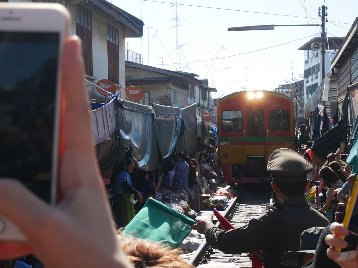 一番印象的だったのはメークロン線路市場で、電車が通過する時刻まで線路上で食品などを売買している光景が日本ではないため、印象的でした。電車通過時、順番に商品やその上の日よけのテントが撤収される様がとても印象的であった他、迫ってくる電車の迫力もすごかったです。