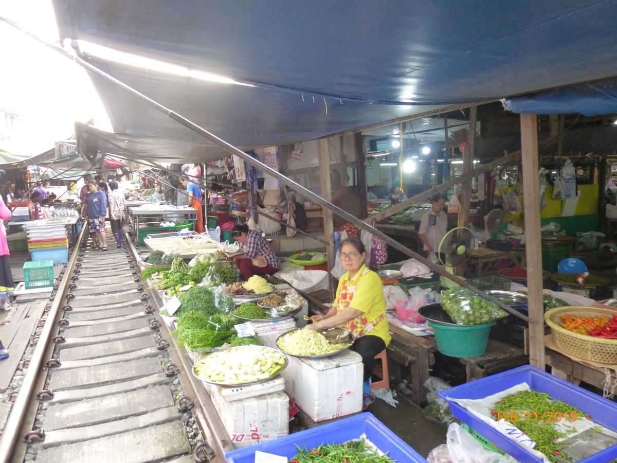 先ず朝早いので一切渋滞に合わず メークロン線市場へ。 まだ混んでいない市場をゆっくり歩け散策。電車が来る頃は立てない位の人・人 確保出来た場所で良い写真が撮れました。