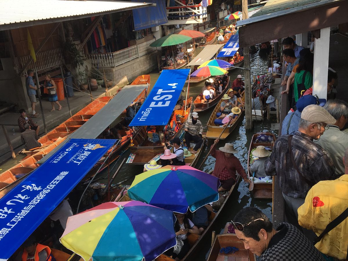 水上マーケットは一種のアトラクションみたいでした。マーケットまでのモーターボートが何より迫力があり、想像以上でした。