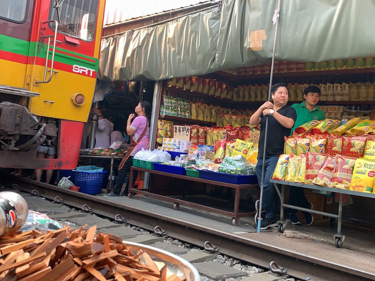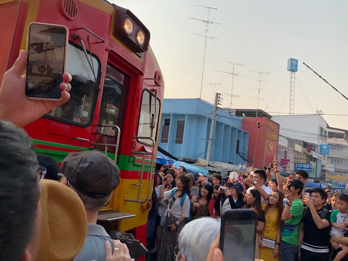最初にメークロン線路市場へ、出発が1時間遅れたので大丈夫かな?と思いましたが電車の到着に間に合いました。