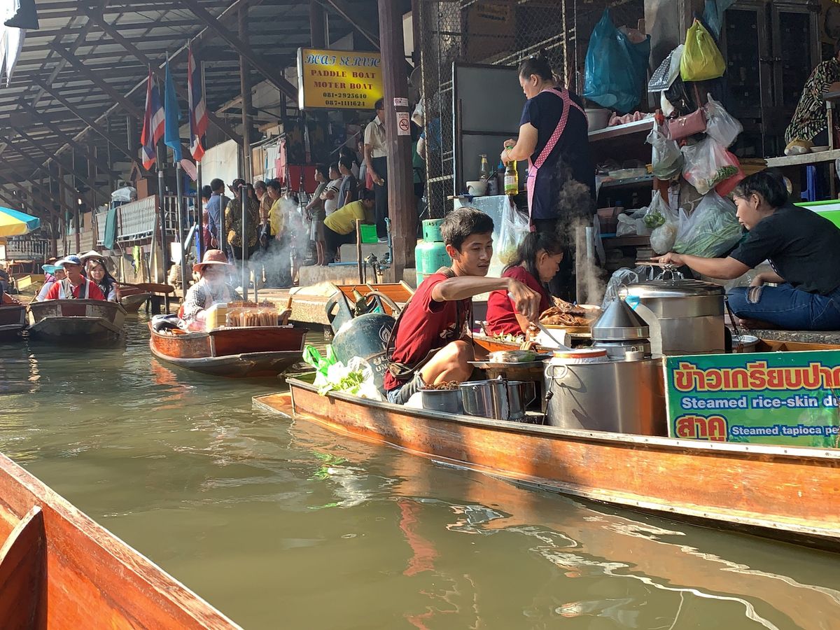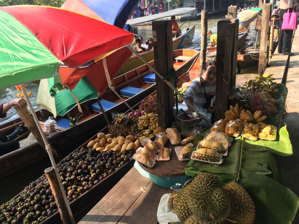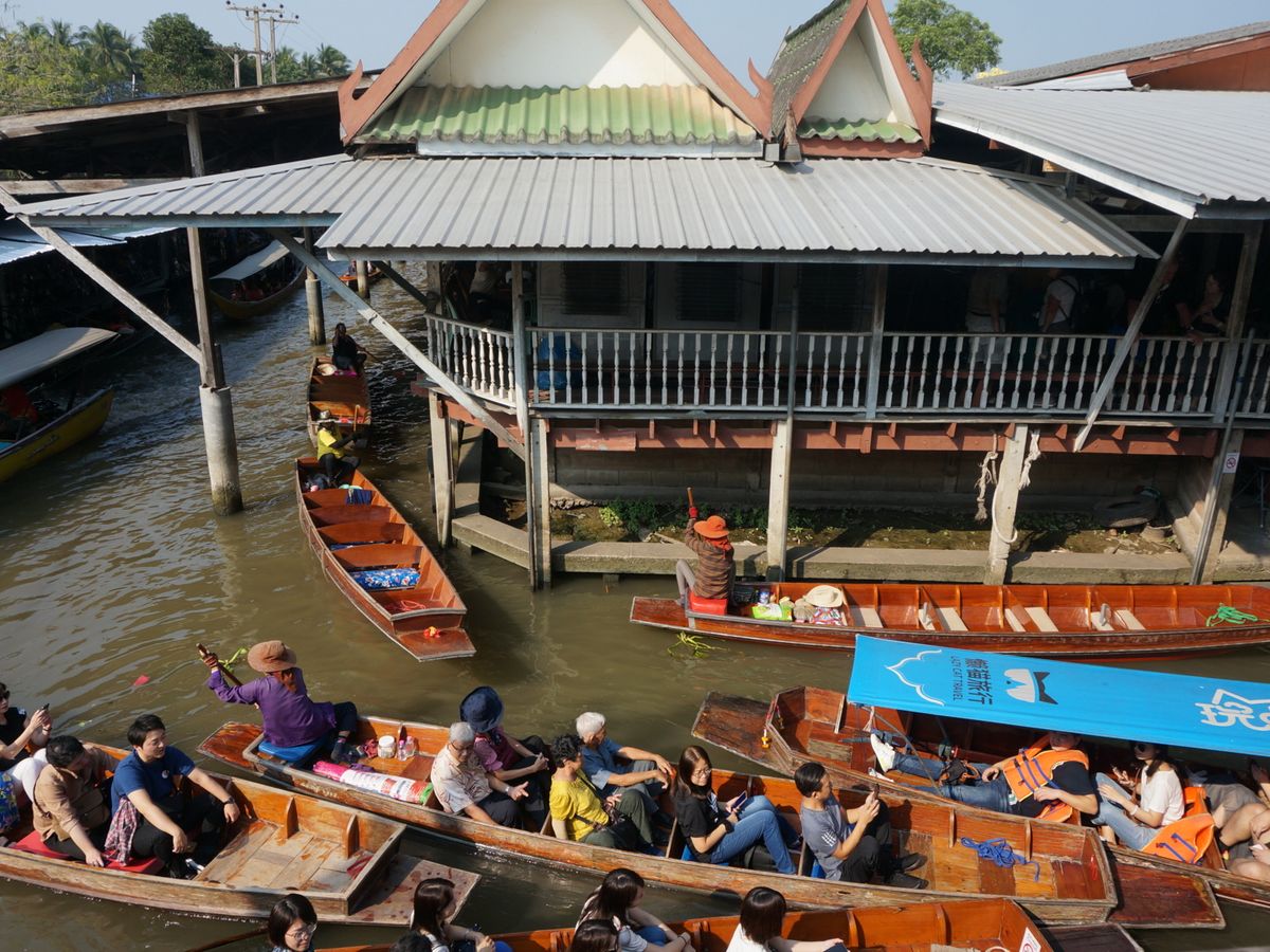 私達はマーケットを岸から回ってボートへは乗りませんでしたが、マーケット奥の繋がってる川?をエンジンボートに乗って回ります。