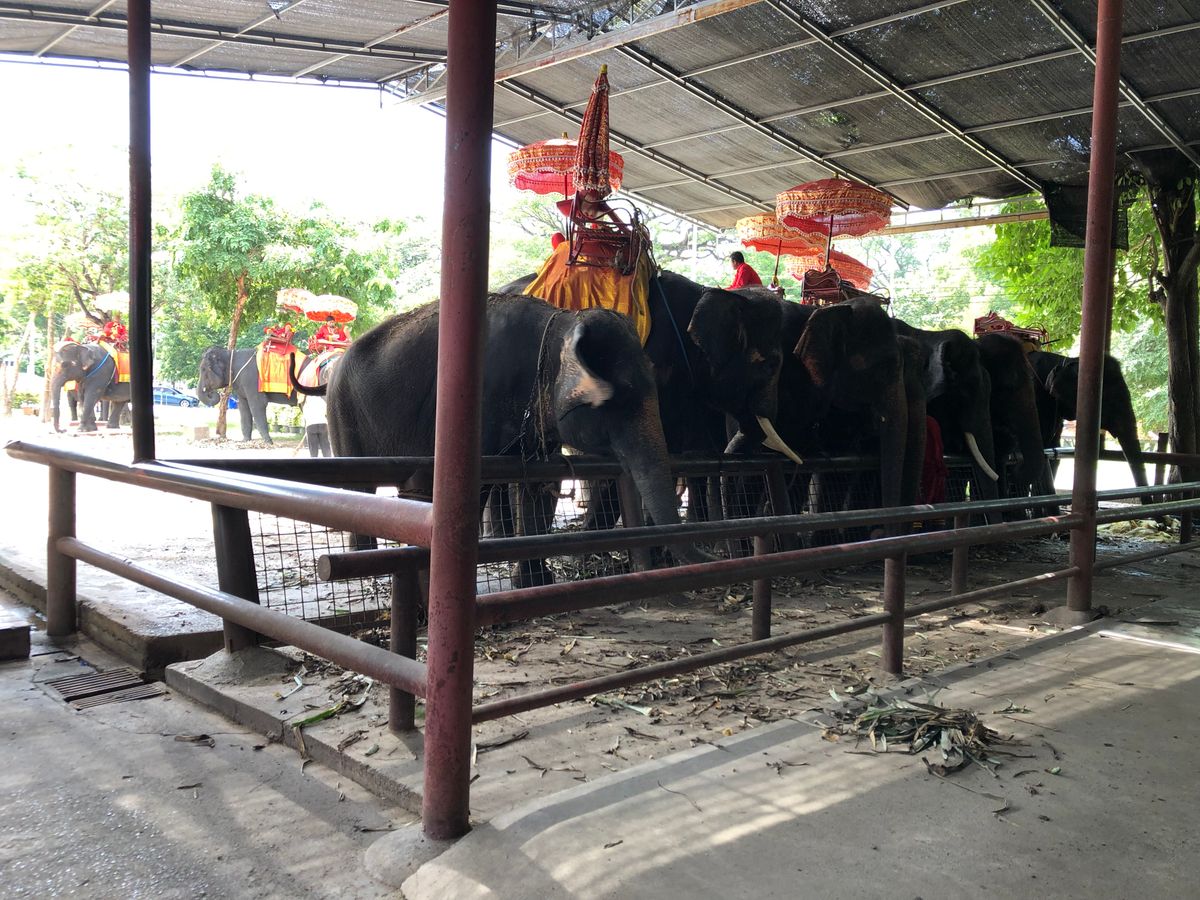 ランチの後、アユタヤに向かい、ゾウに乗ります。