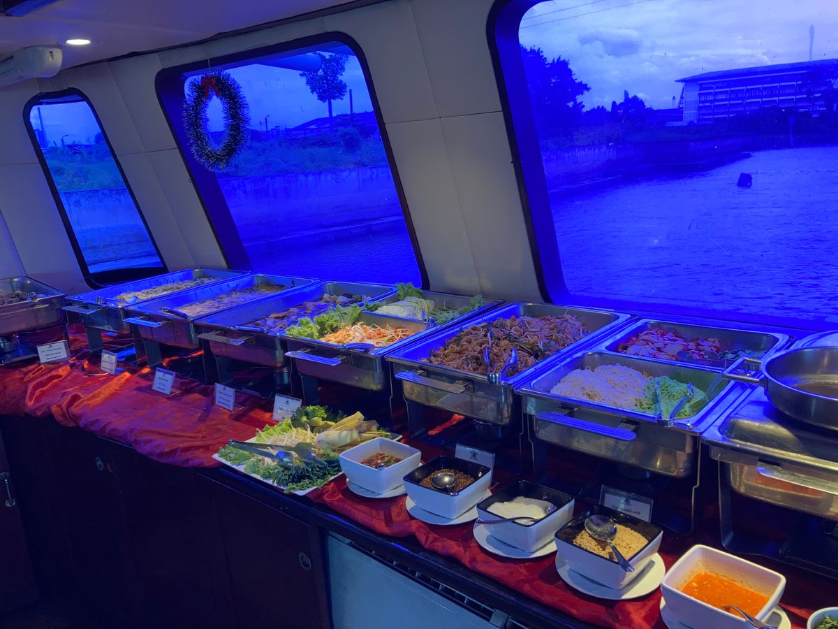 アユタヤ観光の帰りにランチクルーズができるとは知らなくてパンダバスさんに申し込みました。結果は大成功。帰りのクルーズがあるのとないのとでは満足感が違うと思います。アユタヤ観光は広い遺跡を回るのでどうしても体力を消耗してしまいますが、帰りは豪華なクルーズの旅に癒されながらバンコクに帰ることができました。お料理の品数も多くて味付けも外国人向けで辛くなくとても美味しかったです。席も窓側の良い席を準備していただきました。
