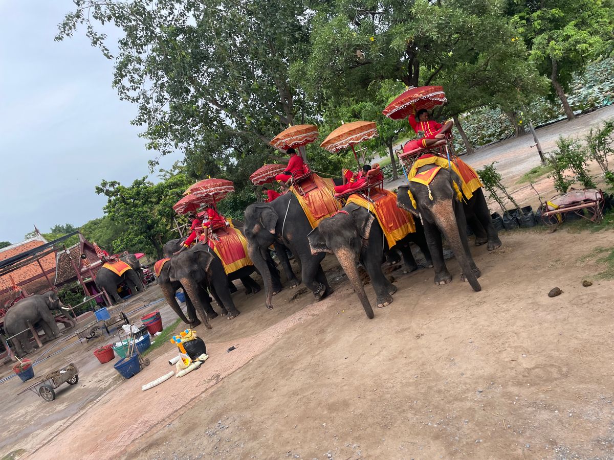 アユタヤは私は再訪でしたが、当時地図を見誤り行けなかった一番有名なお寺に行けたことが嬉しく、母も都会のバンコクとは違う観光ができ楽しかったようです。しかし子どもはお寺にはあまり興味がなく、疲れもありグズグズしてしまいました。一部のお寺はバンで休ませましたが、ドライバーさんも良いかたで安心していっとき離れることができました。象乗りでテンション上がり楽しそうにしていました。ツアーに含まれる範囲の象乗りで十分距離もあり満足しました。途中の池に入るなら+何バーツというシステムだと思いますが、池の前にお客を乗せた象が数頭溜まったものの、そのシステムを説明できる象乗りがいなかったのか、特に説明なくそのまま戻りました。
