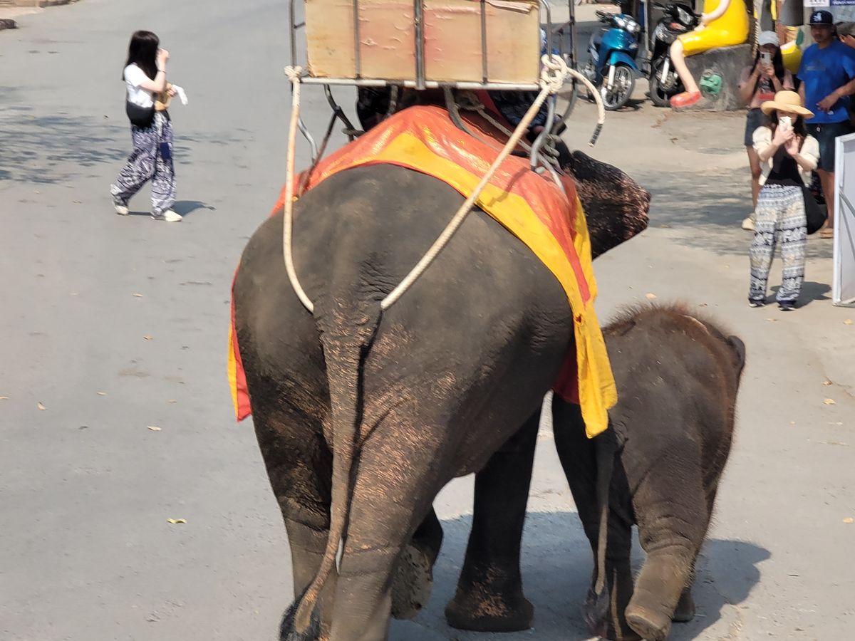 アユタヤでは、遺跡巡りも良かったが、10分間の象乗りツアーが息子に受けて良かった。象や子象にも触れ合えて良い思い出になった。