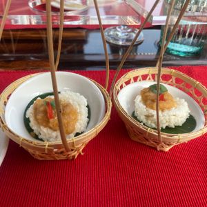 メニューが決まっているので、2人でもいろいろなお料理を楽しめました。前菜が美味しすぎて、食べすぎてしまったので、メインを残してしまったのが残念でした。お料理だけでなく、素敵なカゴに入ったほかほかのライスは、本当に美味しい。アンティークな雰囲気も素敵。