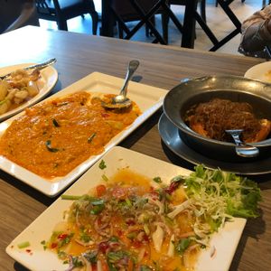 2種類のタイ料理と蟹カレーが食べたかったので、最初の注文時に2種類のタイ料理を頼み、メニューに書かれているメニュー名を指して「これは蟹カレーですか?」と聞いたのですが「ちょっと待ってください」と言われたきりで、その後は私達を避ける様になりました。なので他のウエイトレスさんにお願いして蟹カレーを注文したのですが、他に注文した2種類のタイ料理は届かず。