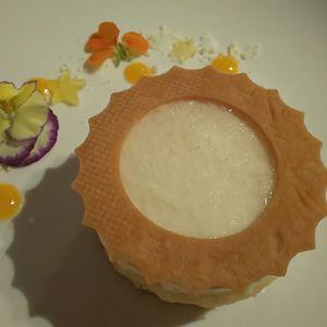 ただ、1皿に2人分の料理として、例えば牡蛎が2つ料理されてあるのは判りますが、1皿に明らかに1つの小さなケーキ風のペーストが料理されてて、これを2つに切って分けるの? はちょっと違うと思いました。