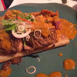 テーブルの鍋の出汁 煮えたぎってました 係りの人が作ってくれるんですけど、食べてる間 他のところに行って作って、そしてまたこっちに戻ってくると言う感じで、なんか早く食べなきゃいけないと言う感じで、自分のペースでは食べれないと言う感じでした 2種類の違った味の鍋かなぁと思ったら、一種類でした。味はまずくは無いけど、とにかく落ち着いて食べることが出来ませんでした。最後にデザートというか揚げパンが出ました 重い もう食べれない フルーツとかちょっと軽いものでよかったのに残してもしまいました ベルトランのクーポンのおかげで安く行けたのですが、リピはないです