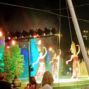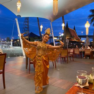 初めてのバンコク、タイ旅行の初日に利用しました。一流ホテルらしく立派な雰囲気で料理も良かったです。早めに着いたら1番前の席に案内してくれて最高でした。料理、雰囲気は最高ですが踊りそのものは「まあ、こんなものか」という程度でイマイチ迫力不足でした。若い人にはトップバーとかクラブとかの方が良いかも、です。私的には十分楽しめました。 1度は経験しても良いと思います。