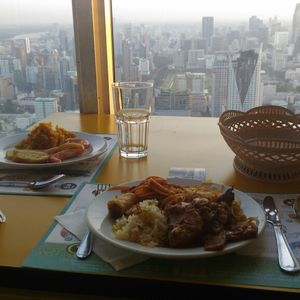値段は高級ホテルのバイキングに比べリーズナブルです。その分、食材に高級感はありませんが。でも、高層レストランなので景色はばっちり。何時間いてもあきません。景色もよく、食事の種類も豊富。なによりもバイキングなのに低コスト・・・・・おススメするレストランです。