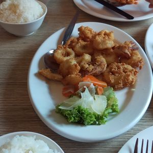 料理はトムヤムクンが辛かった!!イカ?のフライはガチガチ。