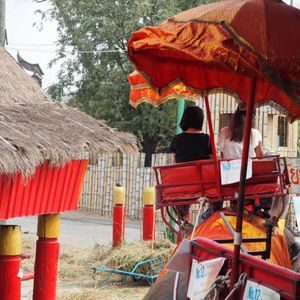 • 長閑な田園風景の中、牛車に揺られてのんびりと。
