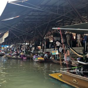 水上マーケットでは、ボートに乗っているときに、カメラを向けられます。そのあとお土産屋さんを歩いていると、その写真が写真立てに入れられて、購入を勧められます。また、大きなヘビを持って首に巻かないかと言われますが、巻いたあとは別途料金が必要です。