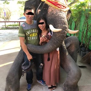 象に乗りは、10分200バ-ツ、20分で400バ-ツ 象使いの人が200バ-ツのチップで象から降りて写真をたくさん撮ってくれます。よくある、出発の時に撮られた写真は200バ-ツで売られていたので、チップ代でいっぱい撮ってもらう方が良いですよ!