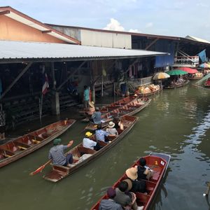 土曜日に行ったのですがとにかく混んでいました。水上マーケットは船がたくさん出ていてすれ違うのもやっとでした。マーケットで売っているお土産は街中で100Bの物が700Bと言われびっくりしました。もう行くことは無いと思います。