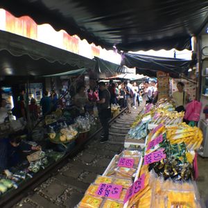 • メークロン線路市場、本当ギリギリを通過です。お店の人に聞いて安全なところで観た方がいいです。