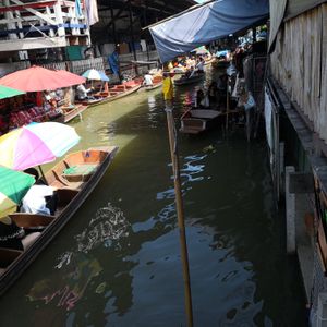 • 水上マーケットの風景です。オプションで手漕ぎのボートに乗船できますが、私は上から観ていました。
