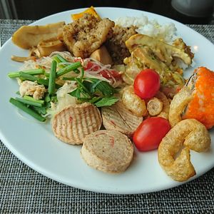 ランチはホテルのビュッフェでアジア料理中心でした。とてもおいしかったです。ゾウ乗りはサクッとしていましたが、想像以上にゾウさんが大きくて高い位置から遺跡を見渡すことができ、貴重な体験でした。参加して良かったです。