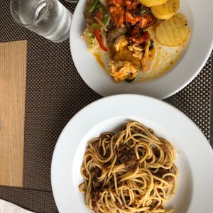 想像より豪華なお料理でした。ケーキもありました。タイラーメンを味わうこともできました。