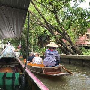 ホテルまでお迎えがきてくれるので、朝早くても無理がないツアーでした。行きはお迎えのバスでゆっくり眠れました。エンジンボートで移動しましたが、スリル満点でした。それから、手漕ぎボートに乗り換えて水上マーケットをみるのですが、お買い物をボートからできるので観光気分で楽しめました。快晴でもあってボートがとても快適でした。ガイドさんも日本語話せるスタッフで細かな注意事項もしっかりお伝えいただけるので安心しました。最後にお水と冷たいおしぼりサービスもあって満足です。帰りは大きなスーパーマーケット近く、電車乗り場の近くなので公共交通機関を使って帰りました。