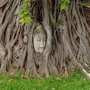 観光は、アユタヤの寺院を一通り回って有名な木の前で写真を撮りました。