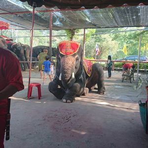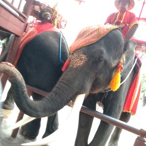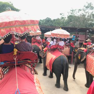 この日の参加者は私たち母娘の他に20代後半の女性3人の計5人でした。ワゴン車での移動なのでちょうどいい人数でした。アユタヤで象に乗りましたが、支払いとチップはタイバーツを使い、クレジットカードは使えないので、注意してください。ガイドさんにお願いして、タイパンツの店に連れて行ってもらいましたが、そこもクレジットカードは使えませんでした。象に乗った時は、同じツアーの人たちが1人または2人で乗るのですが、お互いに写真を取り合って後で写真の交換をスマホでしました。自分が乗っているところは、自分で撮ることが出来ないので。アユタヤ遺跡とバンコクの寺院をガイドさんが次々に連れて行ってくれるので、効率的に観光できて良かったです。ただ、疲れました。