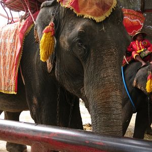 アユタヤ寺院へは多くの遺跡を訪ね面白かったですが、意外にもゾウが良かったです。ゾウに乗りゾウのパタパタ扇ぐ大きな耳が足に当たるとゾウが可愛く感じ初め、眺めのいい背中から川を眺めると古代の王さまになった気分です。