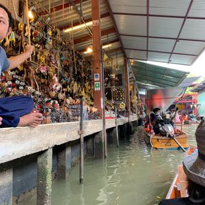 母と2人で参加しました。他の参加者の方がおらず、運良くプライペートツアーのように回れました。水上マーケットそのものは、いかにも観光地という雰囲気があるのは否めません。しかしそれでもいろいろ見所はありますし、自分なりの観点を持って行って、同行者と話しながらだと大変楽しめると思います。タイ滞在が短いと、水上マーケットで焦ってお土産ものを買おうとしてしまうかもしれませんが、特にお金は使わずにのんびり雰囲気を味わうのもおすすめです。