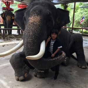 ゾウ乗りも思ったよりスリリングで凄く楽しかったです。終わったあと、入り口でゾウさんの足に腰掛けながらツーショット写真も撮れました。