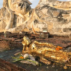 ワット・プラ・マハタートの仏頭はとても神秘的でした。優しいお顔でまっすぐ前を見据えていて、菩提樹に囲まれ守られているように感じました。無意識に手を合わせてしまいます。ワット・ロカヤ・スターは、通り沿いのセキュリティも何もない公園に無造作に横たわっていて、その様子があまりにも気持ちよさそうで、見ているだけでほっこりとします。ワット・パクナムは緑色の神秘的な空間で吸い込まれそうになります。造りも細やかで見入ってしまいます。カリプソキャバレーも綺麗なだけでなく、笑いも兼ねたステキな舞台でした。