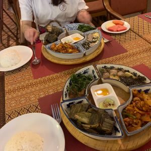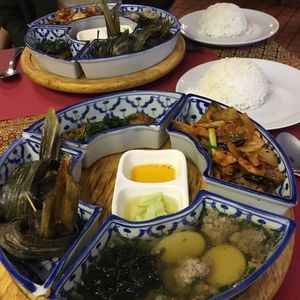 トムヤムクンが有名って言うお店、トムヤムクンがダメで、ほかにもおかずが4種?ぐらいあったのかなー。空芯菜的なのは美味しいかった、