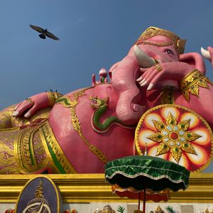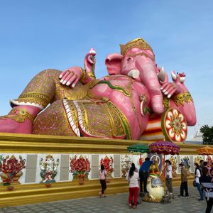 姉と2人で参加。ピンクのガネーシャ、ワットパクナム、ナイトマーケットに行きたく申し込みました。旅の他の日はスパ三昧とアフタヌーンティーでゆっくり過ごす!と決めていたので観光は1日で終わらせる為にこのツアーにしました。バンヤンツリーに宿泊し、朝6時20分にツアーの方が迎えに来てくれました。前日ホテルにお願いして朝食をお弁当にしてもらっていたので、それを受け取りワゴン車に乗って集合場所へ。その後観光用のバスに乗り換え出発!出発してすぐにタイパンツが配られます。早速履いてる方もいましたが、サラッとして楽チンな履き心地で嬉しいギフトでした!一ヶ所一ヶ所の観光時間も丁度よかったです。移動の間は寝れるので、前日遅くまで起きていた私たちにはとても助かりました(笑)海外で移動中に安心して寝れるのも日本人向けツアーだからこそ!自分達で移動だと常に気を張っていないといけないので、そこを考えるととてもよいですね!元々観光は姉が行きたがっており、私は付き添いくらいの感覚だったのですが実物を目の当たりにすると感動しました。