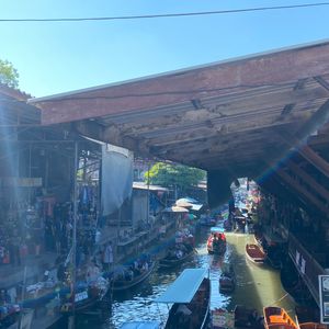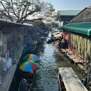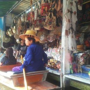 現在の水上マーケットは観光客向けに変化しており、実際に地元の人の市場では有りません。両岸の店は土産物ばかりで船の数は前に進めない程です。活気が有るというか単に船が渋滞し、エンジン音が凄いだけという印象です。従って特に船に乗らなくても良いと思います。