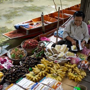 バンコクで有名な三大寺院と一緒に、タイ名物の水上マーケットを楽しみましょう! 水上マーケットはタイに古くから残る伝統的なマーケットです。たくさんの小舟が行きかい、活気があふれる水上マーケットはタイの定番観光の一つとなっています。三大寺院、水上マーケット、バンコク市内観光を一日で満喫できるツアーをご用意していますので、タイにご旅行の際は是非ご利用ください!