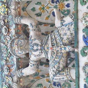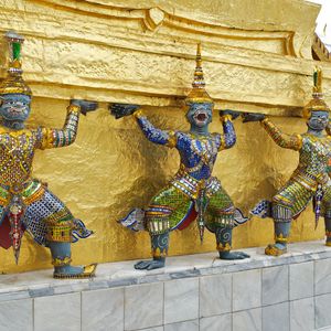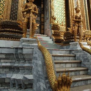 市内観光では、ワットプラケオと王宮、ワット・ポー、ワット・アルン等、回りましたが、建物の造りがどれも日本とは違って新鮮でした。タイならではとも言える~、半魚人の像等もありました。