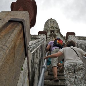 市内観光の暁の寺では結構急な階段を上りました。ハイヒールはきついですね。民族衣装を着て記念撮影ができます。付け爪や王冠、衣装代で300バーツくらいでした。私は撮影しませんでしたが、よい記念になると思います。