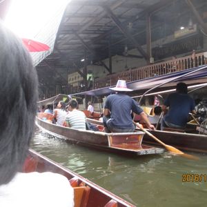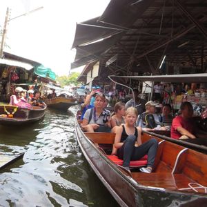 日本から来たおじおばと一緒に参加しました!集合時間が早かったので、集合場所近くのセンターポイントホテルで、朝食を食べて集合しました。集合場所もわかりやすくて良かったです。ダムヌンサドゥアは、ソイがそのまま水路になったという感じで、昔のタイの街は、こんなんだったのかと想像して楽しいです。水上マーケットは、思ったほどぼったくりではなく、買い食いも楽しいかったです。各国の観光客がたくさんいて国際色豊かです。ガイドさんによると、スピードボートは、007のか映画でも使われたらしくスリル満点でも良い経験ができました。昼にバンコクに戻り、ホテルでビュフェの昼食でした。ツアーに付いているビュフェなので期待してませんでしたが、思いの外美味しかったです。日ごろあまり食べないタイのデザートを試しに食べてみましたが、見かけほど甘くないと思いました。午後からの市内観光は、王宮に王族の方がいらっしゃっていて、入場制限されてしまい炎天下のなか30分ほど待っていたので、おじおばの体調が悪くな