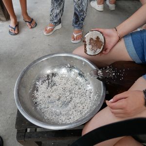 最初、ココナッツ工場に行きましたが、押し売り的なこともなく、ウロウロできました。ココナッツ砂糖なるものを味見したら結構おいしかったのでお土産に買いました。500gで90B(300円弱)でした。一番喜ばれたお土産になりました。