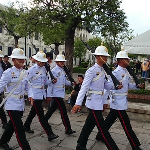 王宮周辺はお参りに来ている黒服の国民でいっぱいでした。中に入る時は荷物検査などセキュリティチェックがありました。