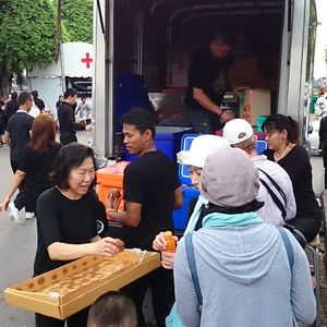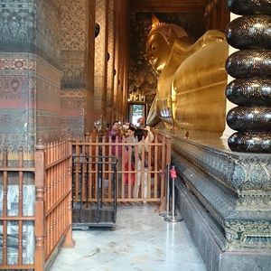 市内観光は結構混雑していますがそれも観光だと思っていた方がよいでしょう。当時は国王崩御から1か月後(一般の喪明け直後)でしたが、王宮は弔問の列が長く続いており、周りには施しが行われており、ジュース・水・喪章などなどいろいろなものが配られていました。タイ人の国王への気持ちが伝わる場面でした。私も喪章をつけていったら、ガイドさんにありがたがれました。外国人はそうでもありませんが、まだまだいえていない人が大勢います。配慮は必要だと感じました。