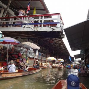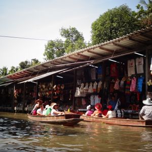 ○まずは、モーターの付いた比較的大きなボートで水路を観光した後、手漕ぎのボートに乗り換えました。両脇にお店が並び、気に入ったものがあると、ボートを止めて値段交渉を行います。私は、ゾウの小さな財布を6個セットを友人と2パック500バーツで買いました。高いのか安いのかわかりませんが、その雰囲気が楽しかったです。友達も大満足していました。
