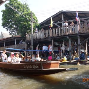 バスでホテル前までピックアップしてくれ、水上マーケットではエンジンボートと手漕ぎボートの両方楽しみました。