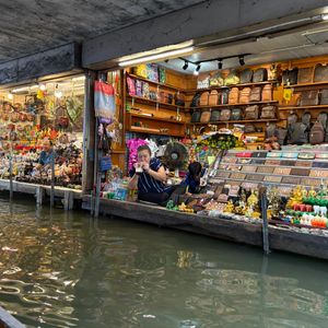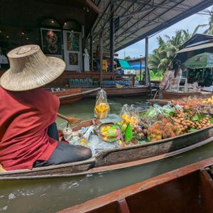 特に水上マーケットでの体験は凄くたのしかったです。200バーツの追加料金で乗れる手漕ぎボートを強くお勧めします。現地の方が操縦してくださる船に乗ってそのまま様々な工芸品や食べ物を眺めたり買ったりする経験は異国にいるのだと強く感じる瞬間でした。私は大蛇をクビに巻く体験と揚げたバナナ、ココナッツアイス、マンゴースティッキーライスを食べました!