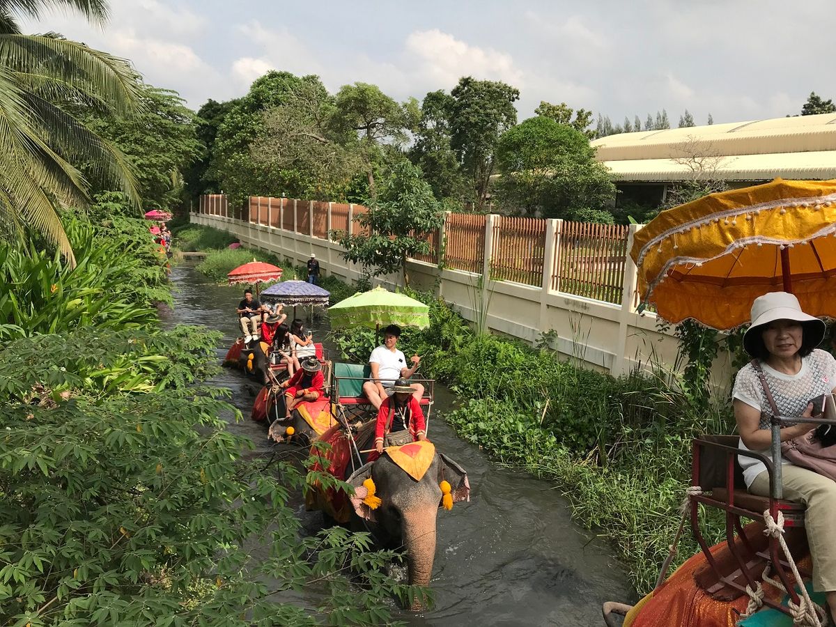 宿泊場所でピックアップの後、参加者待ち時間が長く、ややイライラ。さらに砂糖工場見学にも連れて行かれまたイライラ。でも自由行動可能でした。像乗りはアユタヤや他の国のオプショナルツアーに比べ短かったけど、ちょうど良い感じでした。他の像乗りの像使いが写真も撮ってくれたので、像使いにチップはずみました。水上マーケットの手漕ぎボート費用がツアー料金に含まれていないのは意外でした。別途一人200バーツかかります。