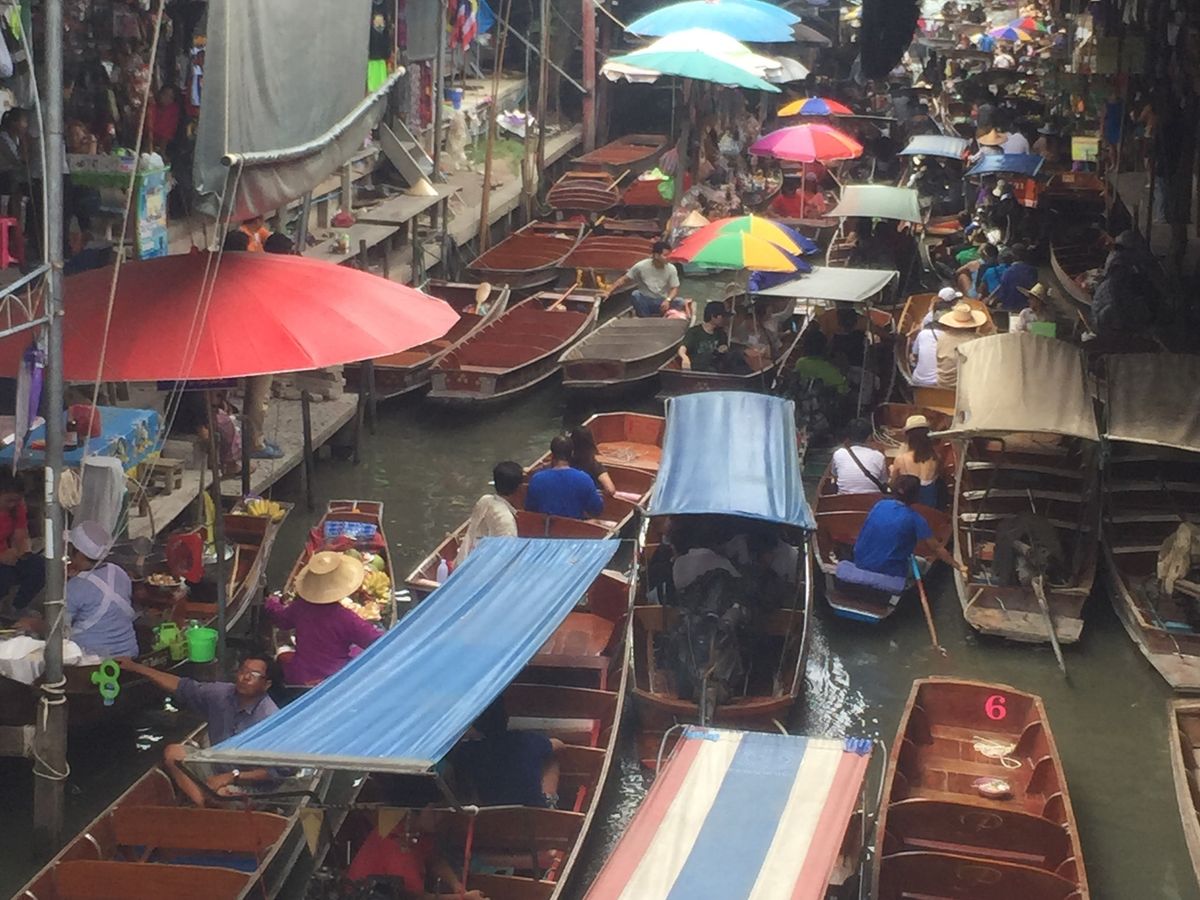 水上マーケットと象乗りを効率よく体験できました。水上マーケットは手漕ぎボートに追加代金を払って乗れるのですが、エンジン付きボートが近くを通ると排気ガスの臭いがきついので敏感な方は注意して下さい。ボートの上で買ったココナッツアイスは美味しかったです。