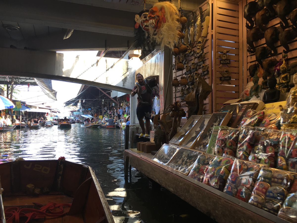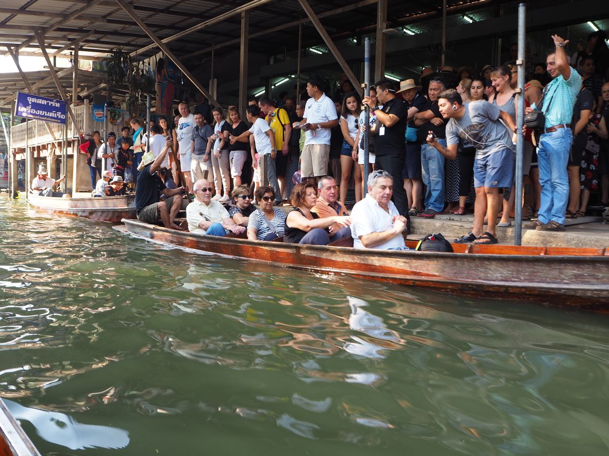 休日ということもあって、各国からの観光客でごった返していた。水辺の土産物屋は観光地価格なので値段交渉が必須だが、相手も観光客慣れしているので、タイ語で交渉しても面倒くさかった。個人でUberの運転手と交渉して、もっと安い料金で回ることもできたと思うが、バンに乗っているだけでいろいろ連れて行ってもらえるツアーはやはり安心、便利でアリだと思う。