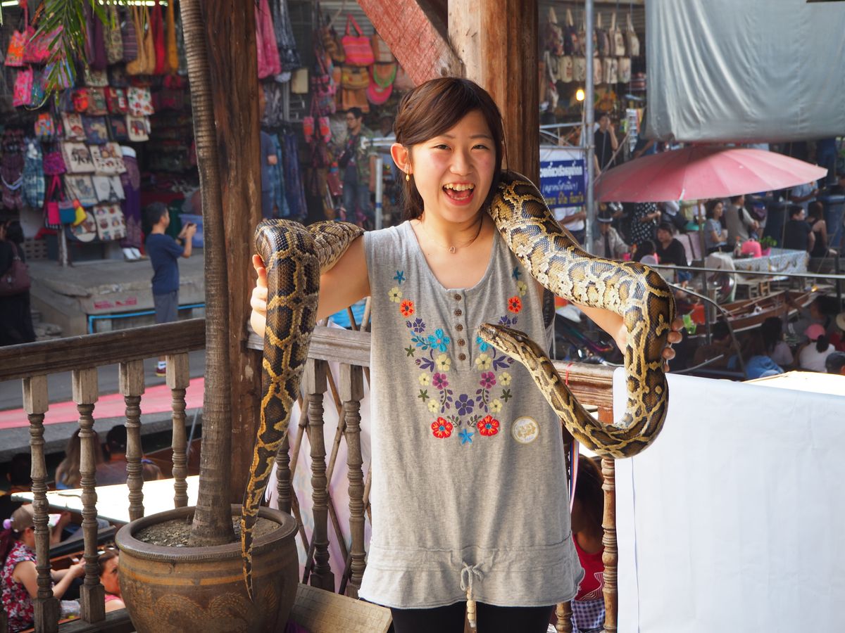 蛇の首巻きが200バーツで出来ます。