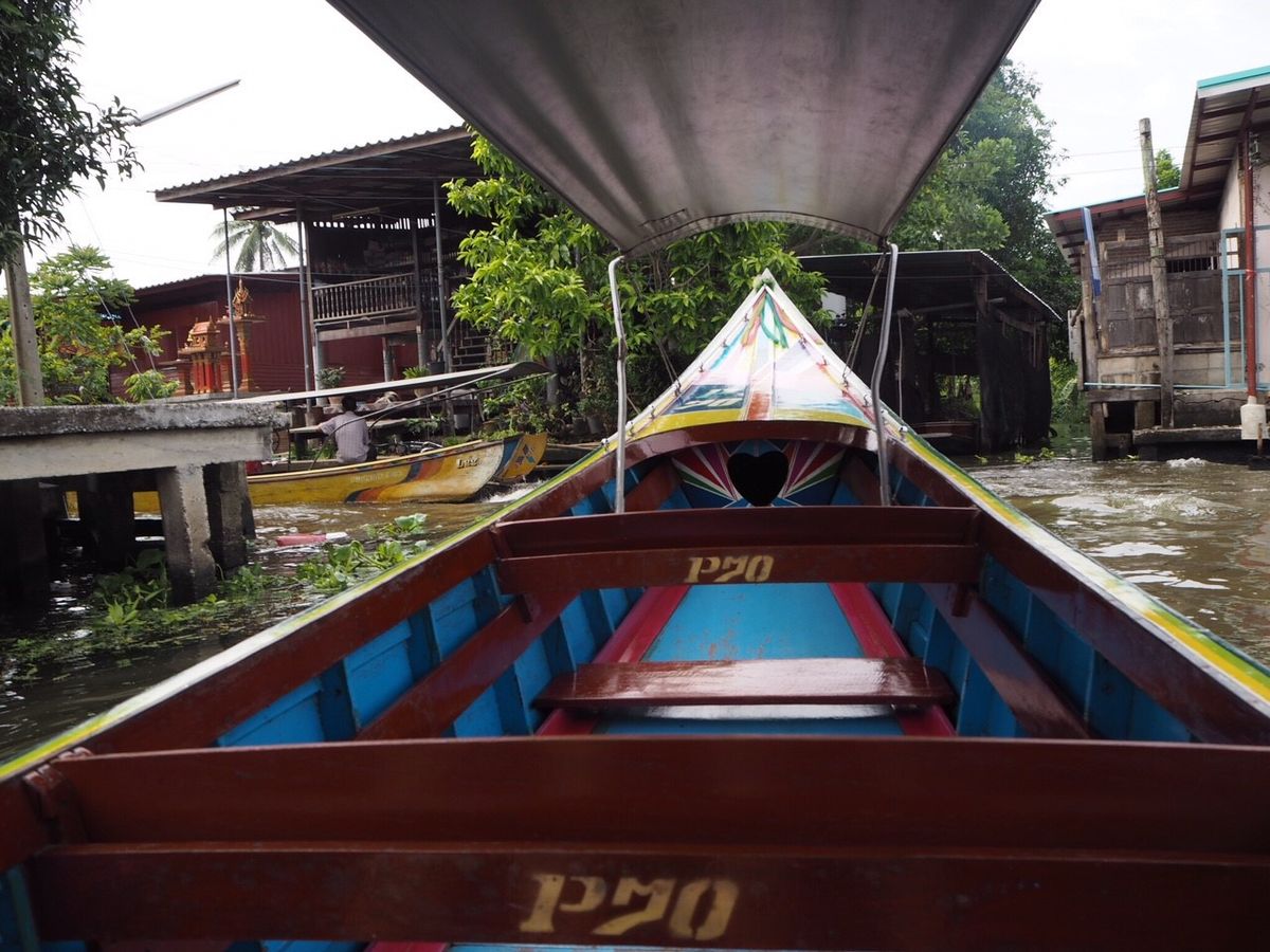 このツアーはボート乗船は含まれていませんが、当日我々を含め3組の参加者全員が、現金払いでボートに乗流ことにしたため、200BTSの手漕ぎ舟と200BTSのJames Bond モーターボートにも乗りました。いずれも乗った方が良いと思います。モーターボートが、水辺の生活を見られて案外楽しいです。